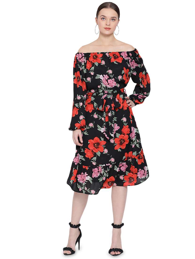 off shoulder floral a-line dress