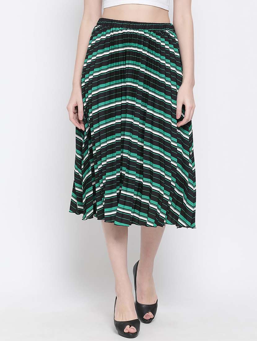 mid rise striped a-line skirt
