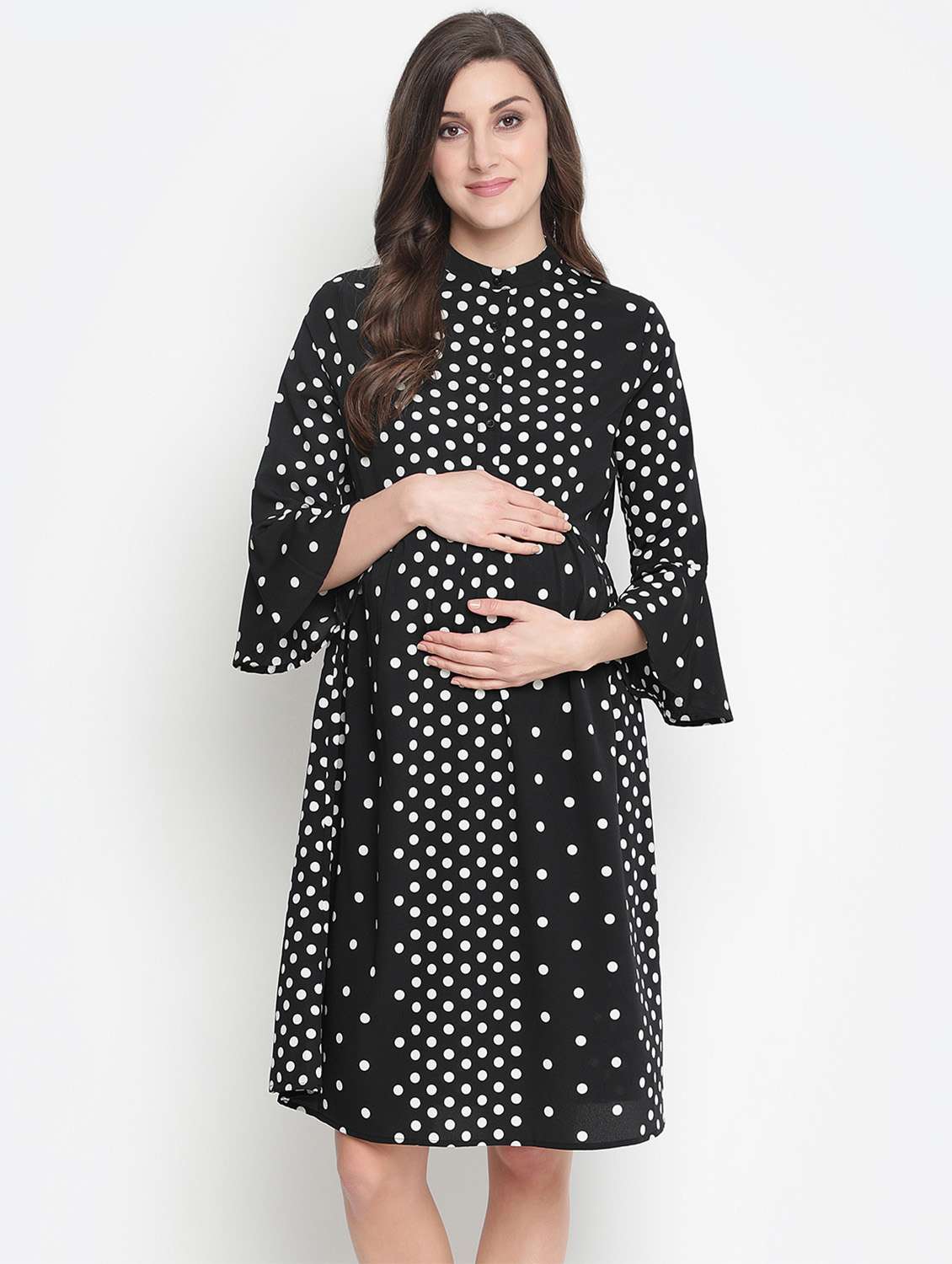 bell sleeved mandarin neck maternity wear dress