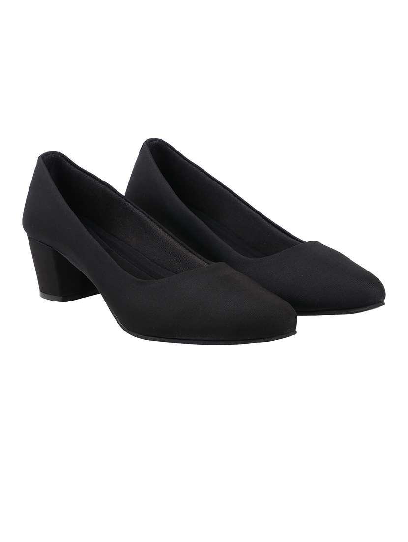 black solid slip-on pump heels