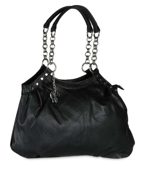 black plain solid leatherette hand bag