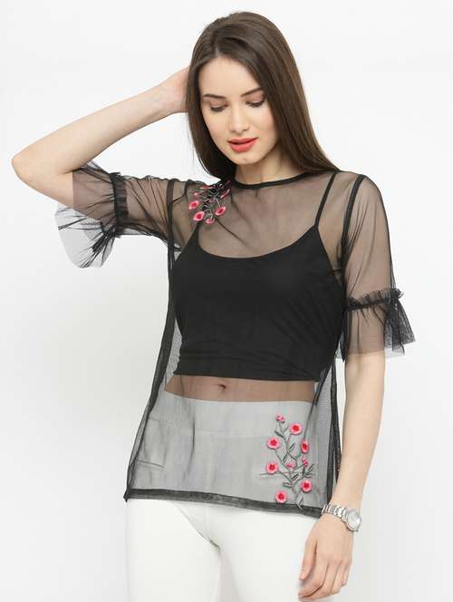 - » round neck sheer embroidered top