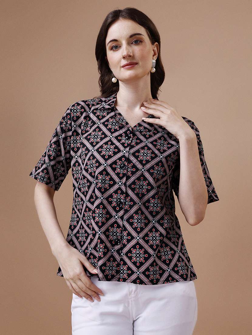 - » black ethnic printed buttoned shirt