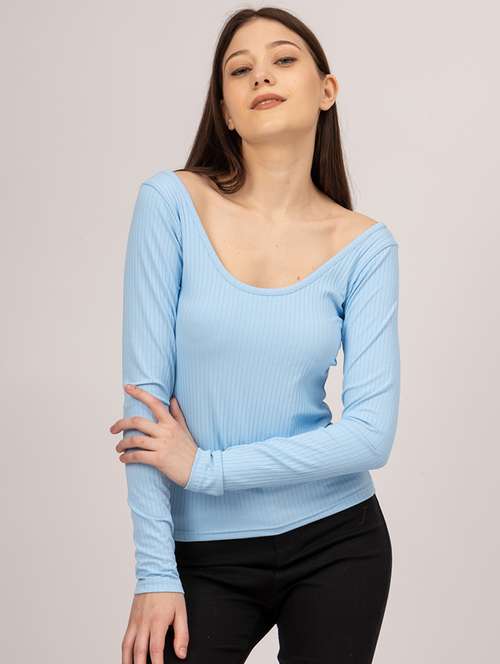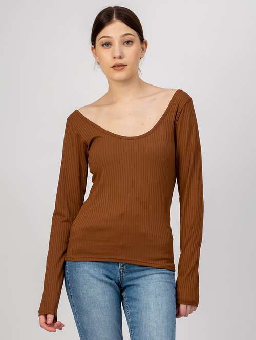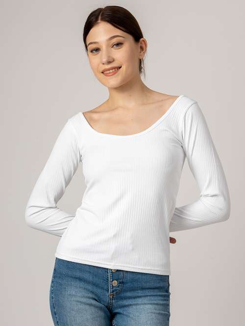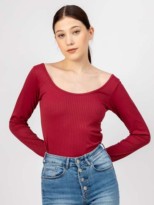 - Opt for this top made up of poly cotton material and get it in a varied neck design.