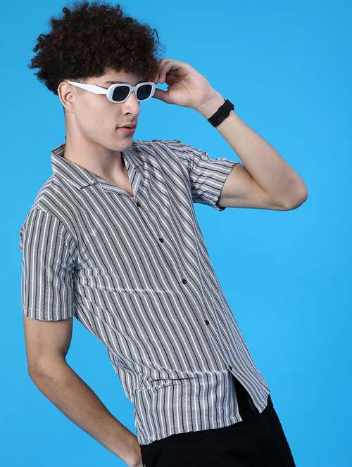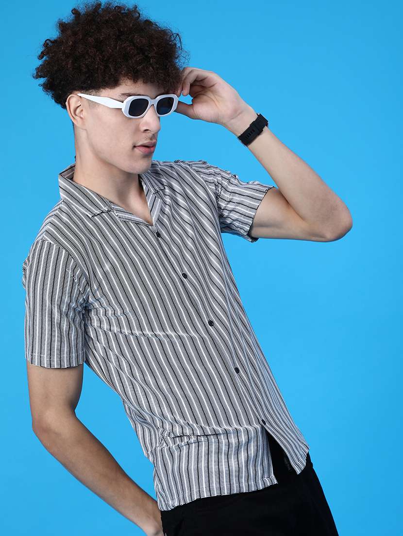men striped short sleeve regular fit casual shirt