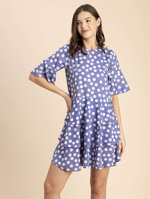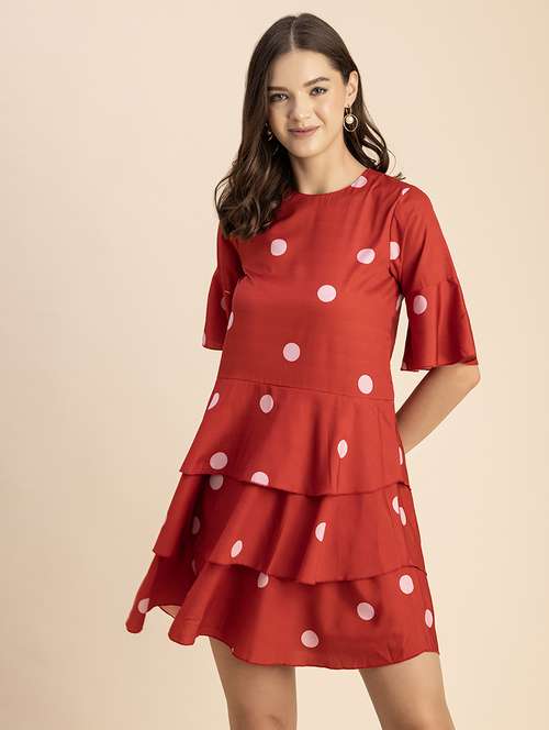*Includes: This Clothing Consists Of 1 Dress (Any Accessories Worn By The Model Are Not For Sale)*Material: Poly Crepe*Dress Length: 36 Inches (Approx.)*Model Stats: The Model In The Image Is 178 Cm Tall, And Bust 34\ Inches Is Wearing Size - (S) Small*Features: Round Neck, 3/4Th Ruffle Layers, Drop Waist Style, Midi Length, Lightweight And Polka Dots Print Pattern*Care: Machine Wash At 30, Tumble Dry At Low Heat, Iron On Low Temperature*Size Information: Please Refer To Our Size Chart Before Making The Purchase. If Your Size Is In Between Two Sizes, We Recommend That You Choose A Larger Size*Tags: Polka Dot Dresses, Printed Ruffle Midi Dress, Chic Dresses 2023, Round Neck Dress, Casual Ruffle Dress, Loose Swing Dress