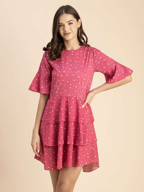 - Dress up in a soothing pattern and don this dress made of poly crepe material.