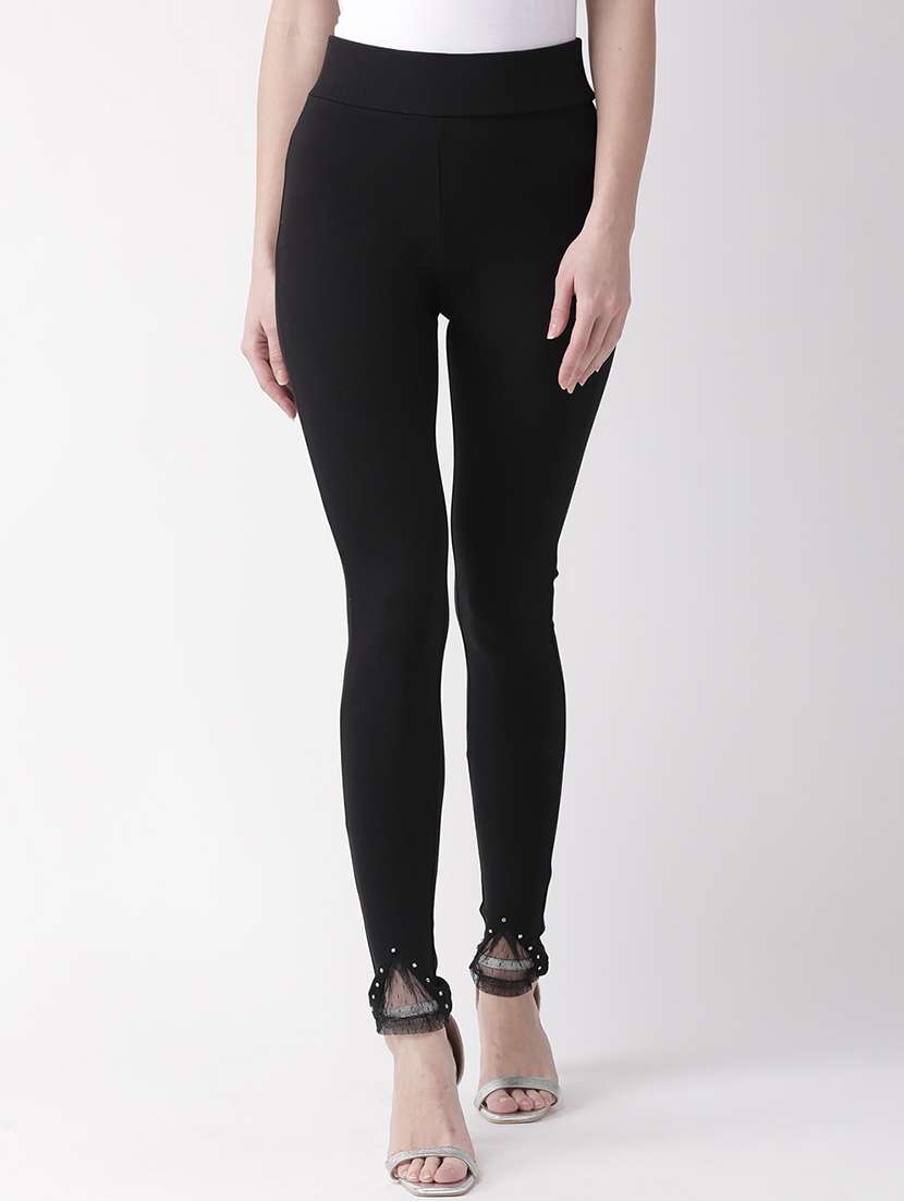 embellished hem high rise jeggings