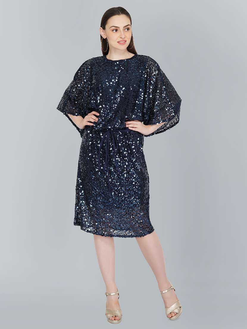 bell sleeved sequined blouson dress