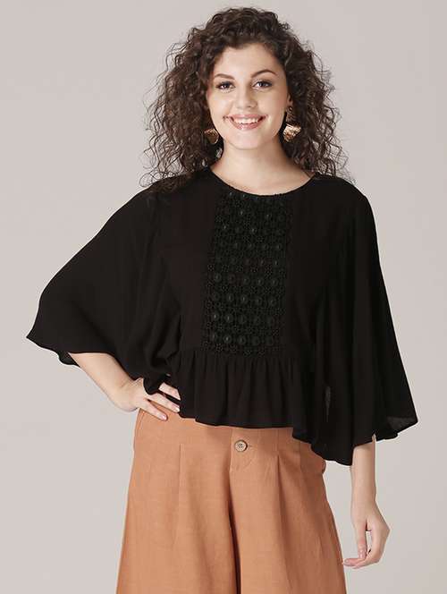 - » bat wing sleeves lace panel top