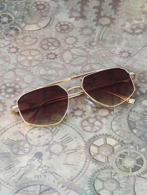 ted smith unisex aviator rhombus gold black sunglasses with uv protected lenses