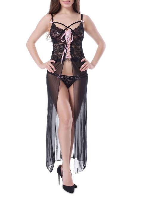 Black polyester and spandex gown