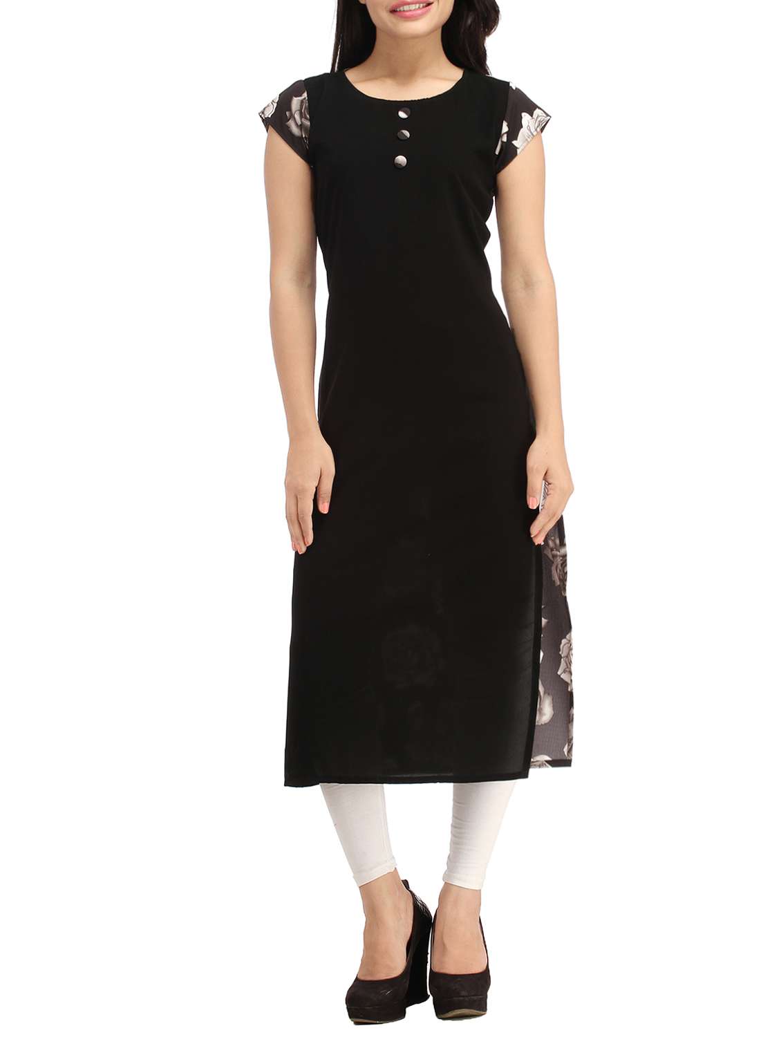- » black floral print kurta