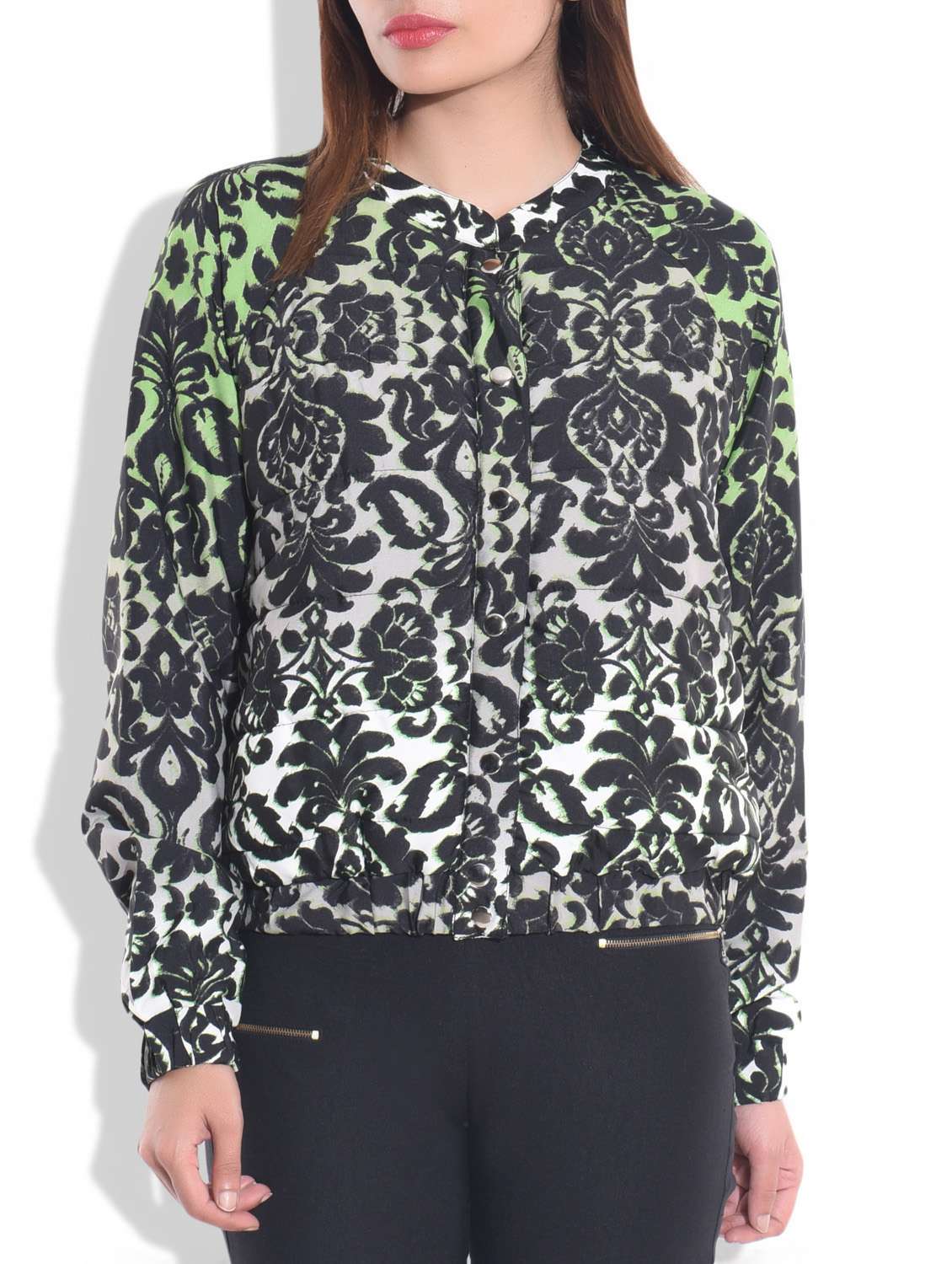 - » black polyester printed jacket