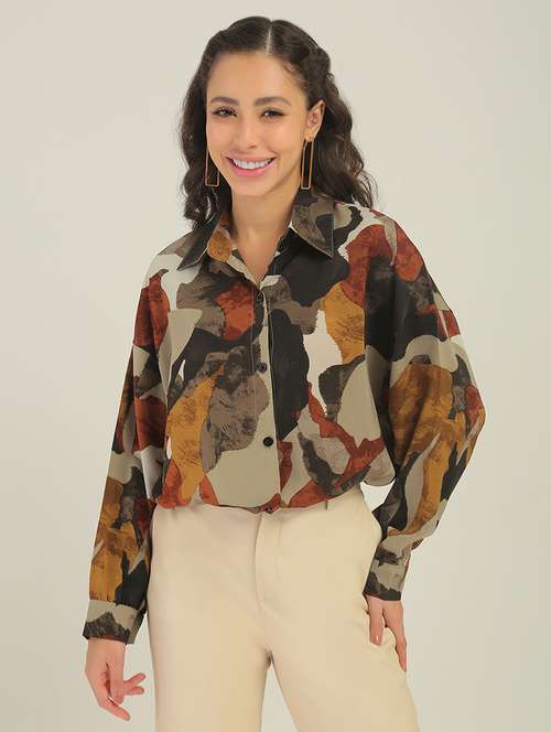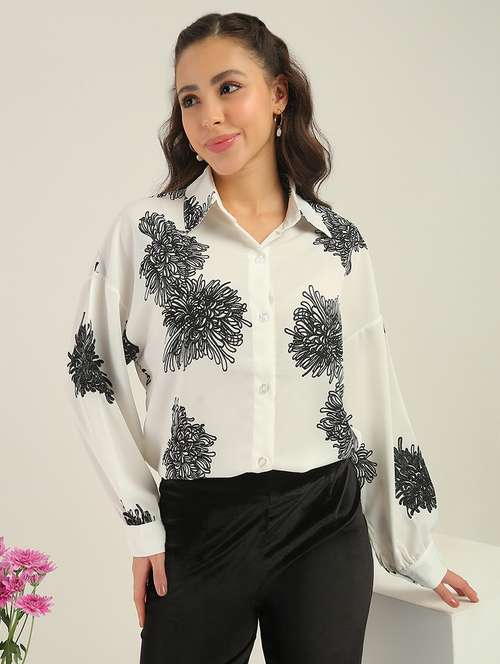 floral print polyester relaxed fit shirt