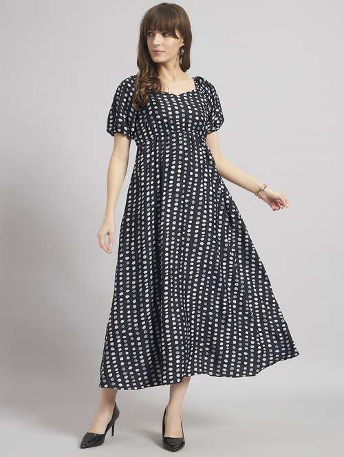 - Dress up in a soothing pattern and don this dress made of crepe material.