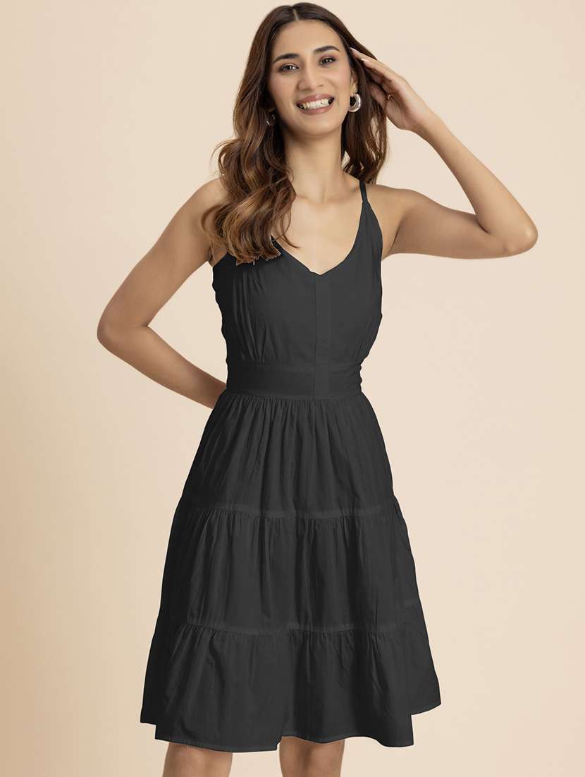 - Looking for some awesome collection of dresses? Well, lay your hands on this dress from Moomaya and also get the option of choosing from black colour.