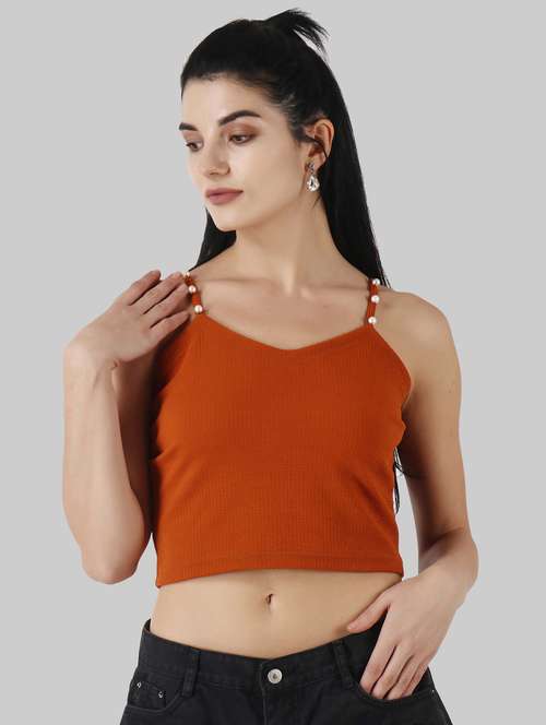 - » women solid sleeveless crop top
