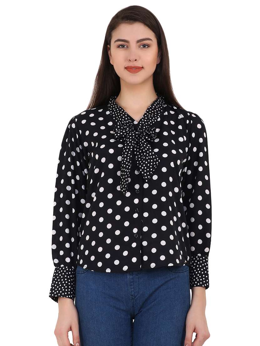 - » tie up neck polka dot top