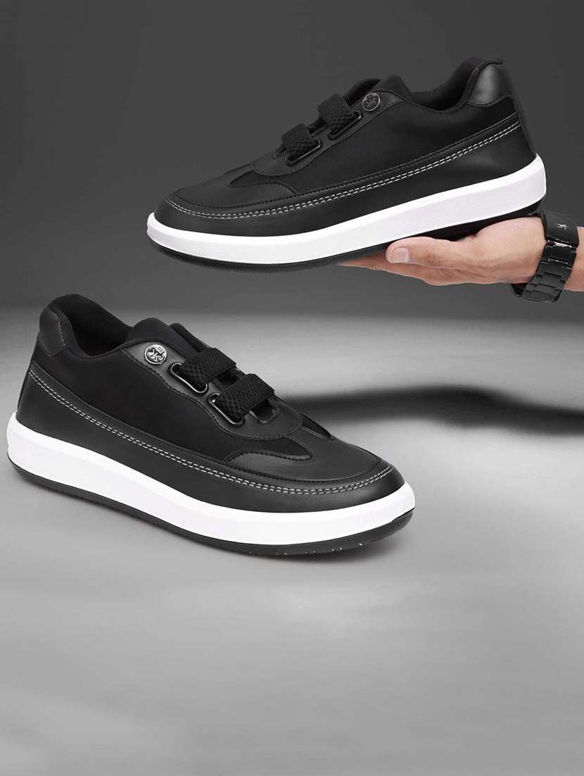 black pu lace up sneakers