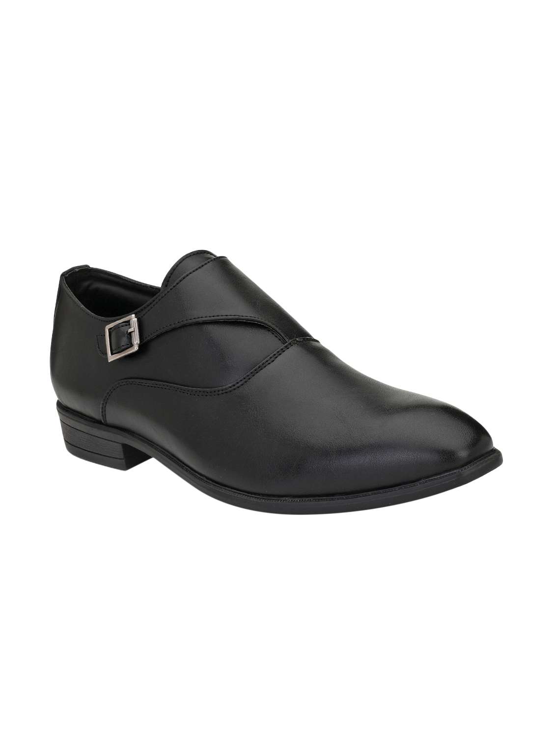 black leatherette slip on monk straps