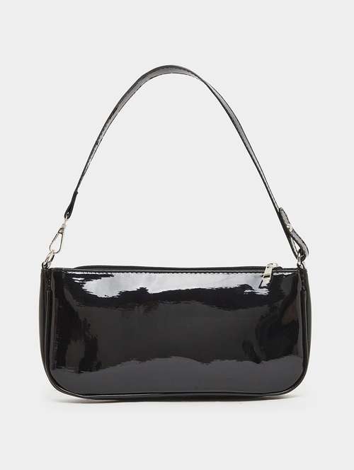 This Shiny Textured Solid Shoulder Bag in black adds a touch of elegance to any outfit. With a sleek, shiny PU exterior and a polyester lining, this bag is perfect for parties or casual outings. The spacious design (28 x 3.5 x 13 cm) provides ample space for your essentials, and the detachable sling strap offers comfort and ease of carrying.
