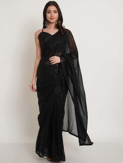 - » women black sequin work saree