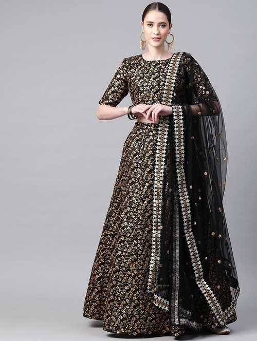 - » black raw silk aline lehenga