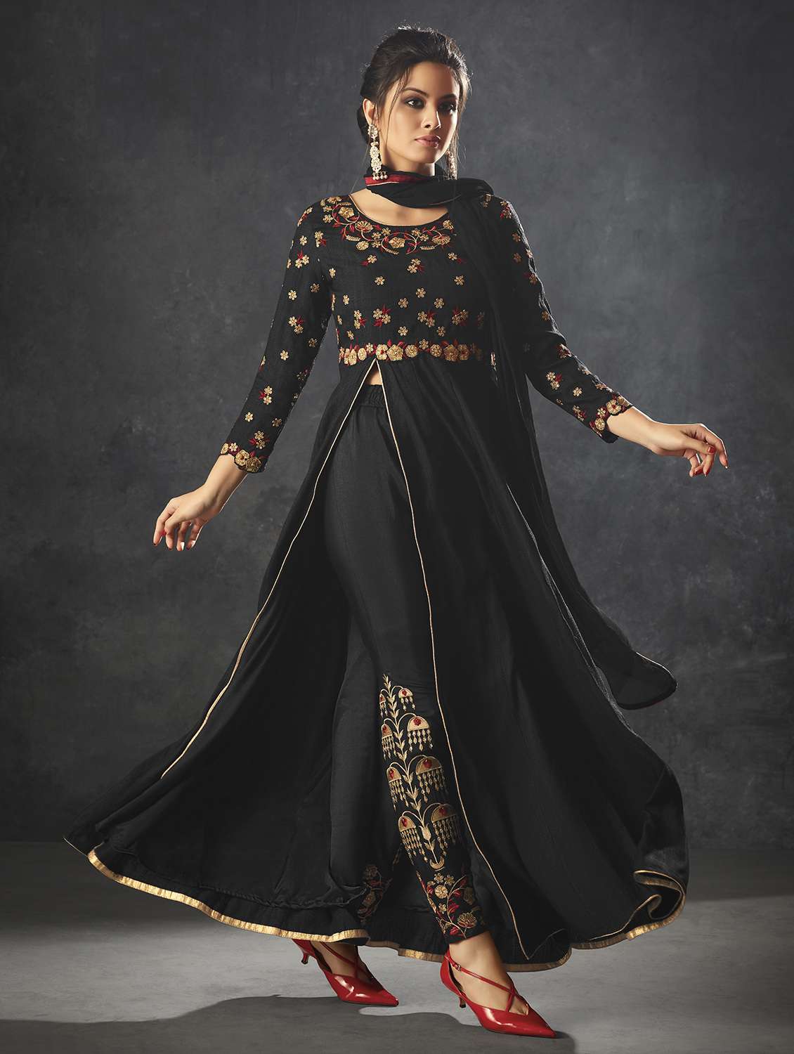 high slit embroidered semi-stitched suit