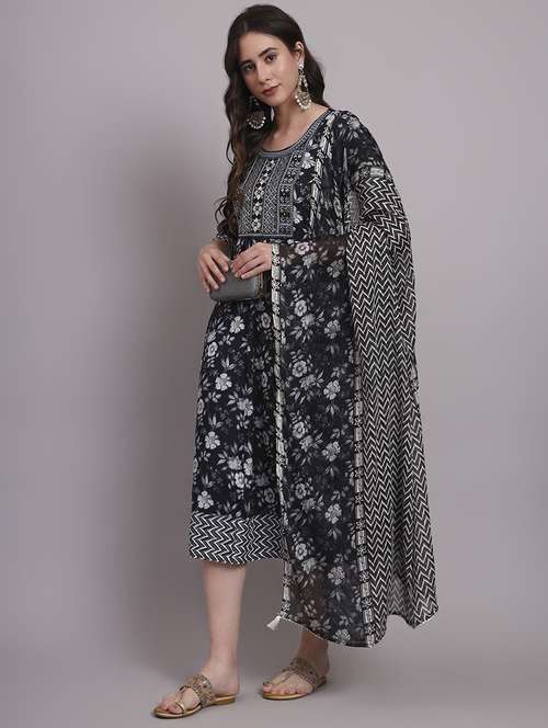 - Find gorgeous sets of ethnic wears in trending designs in black colors suitable for casual wear of occasions.