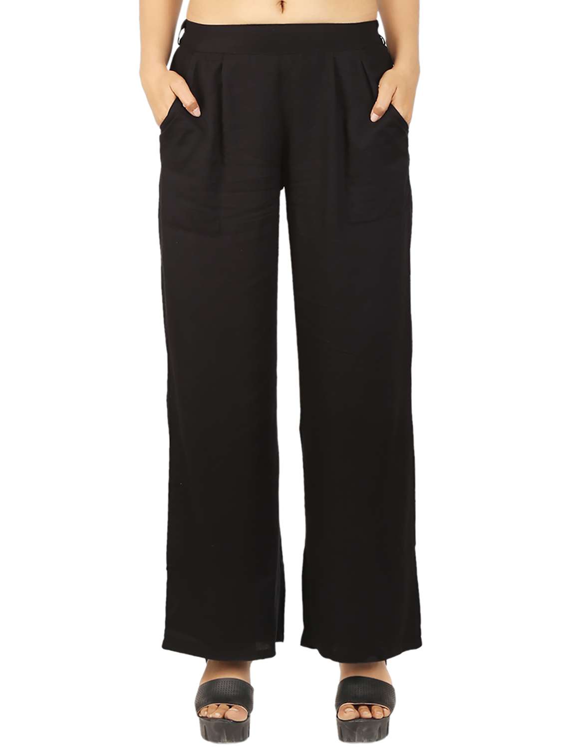 solid pleated straight palazzo
