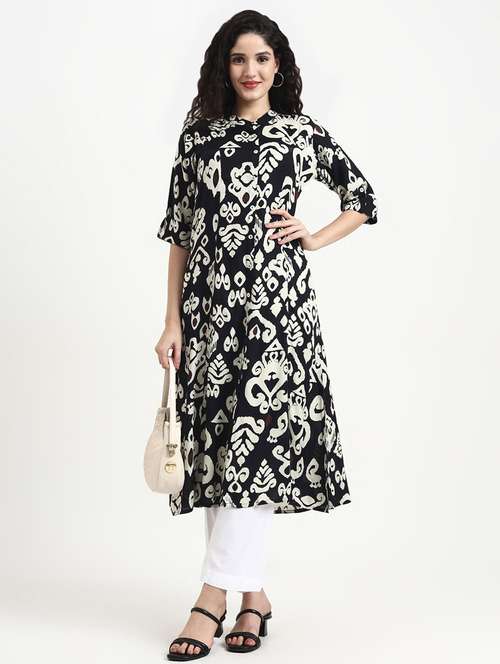 - » women printed three quarter sleeve a-line kurta