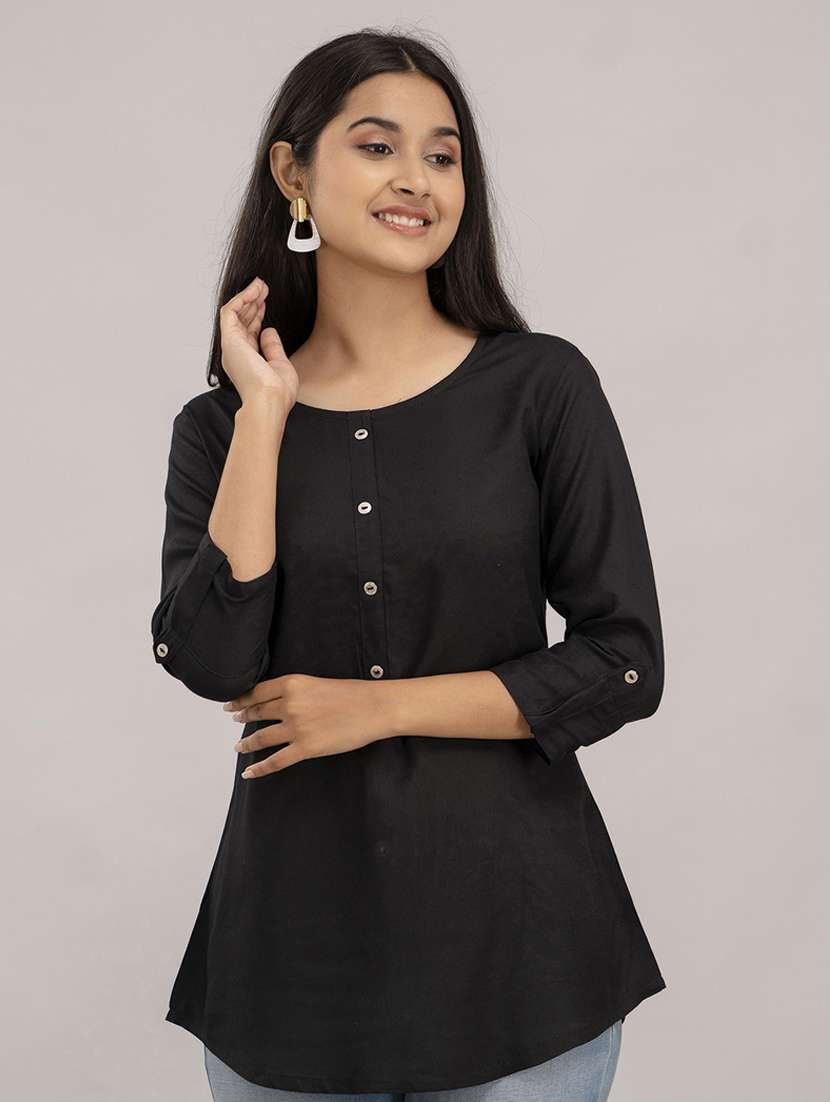 - Opt for this top made up of rayon material and get it in a varied neck design.
