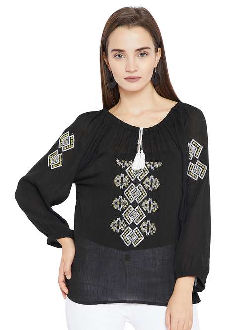 - » women's straight tie-up neck top
