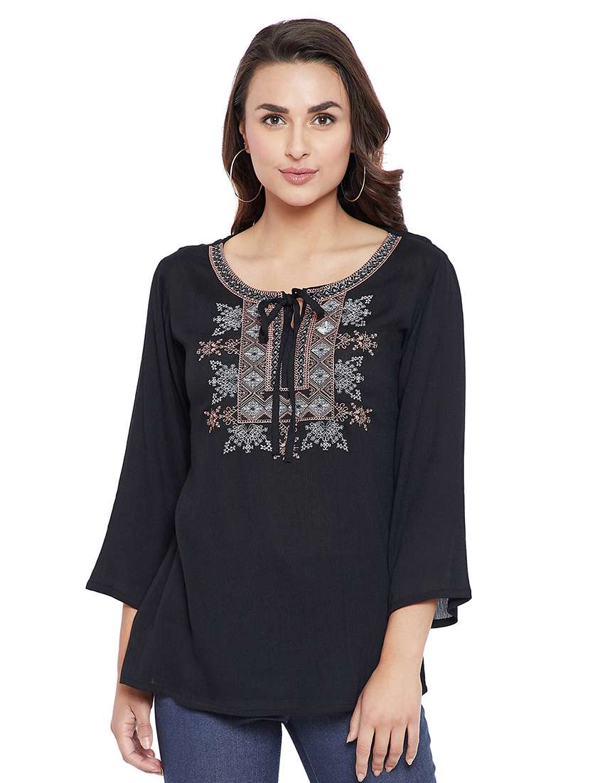 - » women's straight tie-up neck top