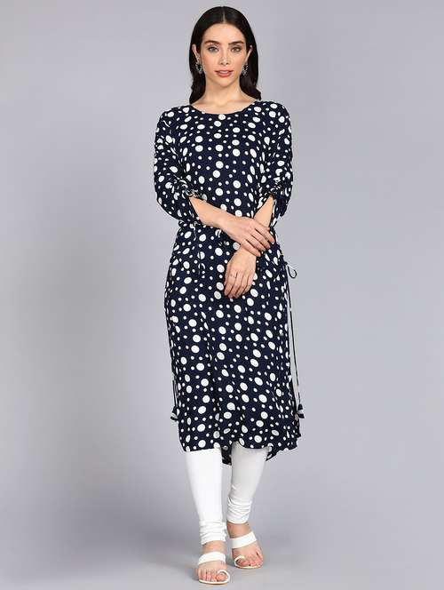 - Grab this beautiful kurta made up of rayon fabric featuring round neck designs.