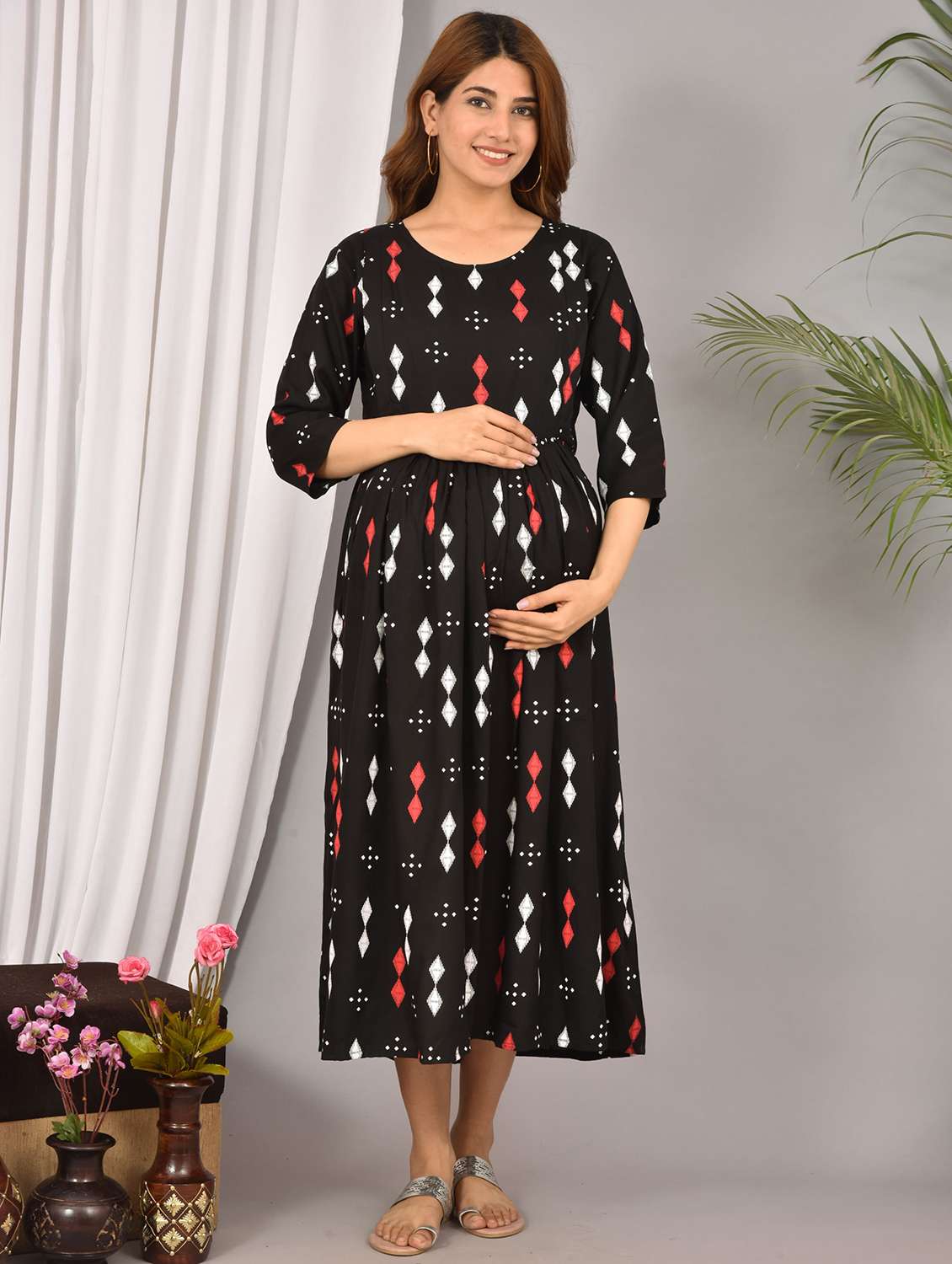 - » round neck printed maternity wear dress