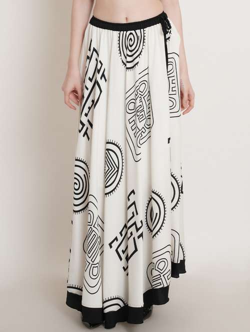 - » white printed flared skirt