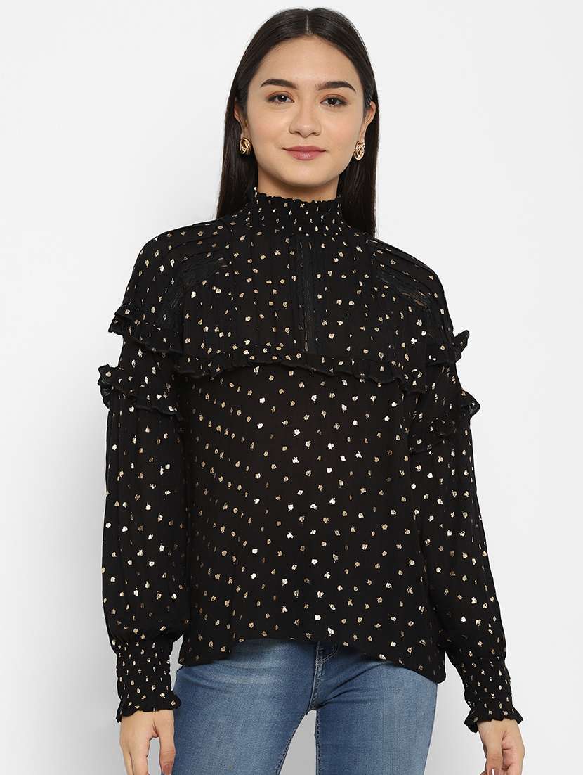high neck printed top