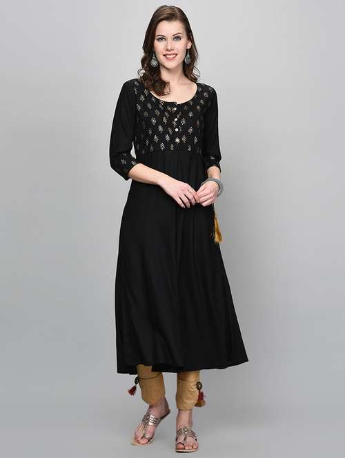block printed flared kurta - 16204574 - Very Small Image - 1