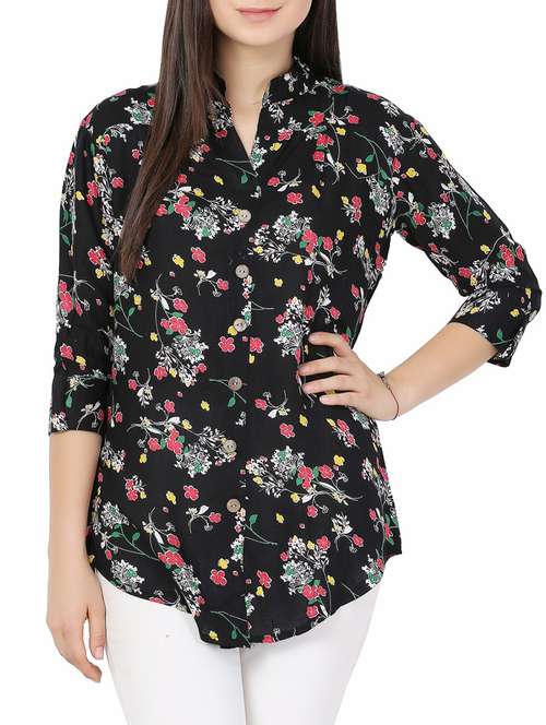 - » black floral rayon tunic