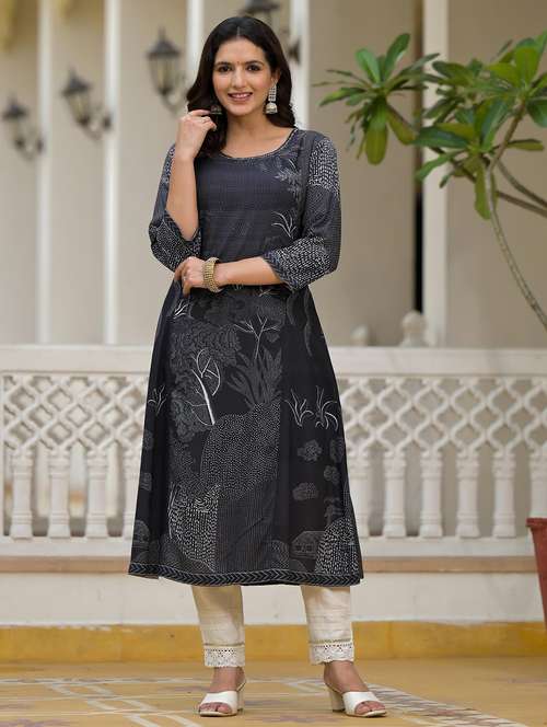 - Grab this beautiful kurta made up of rayon fabric featuring round neck designs.