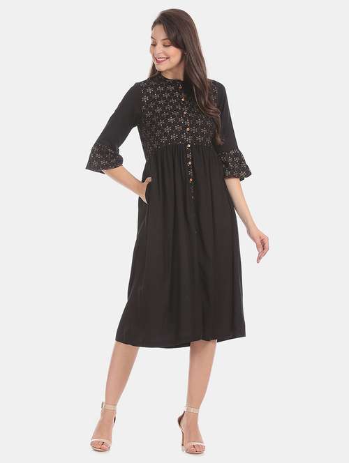 bell sleeved printed a-line dress