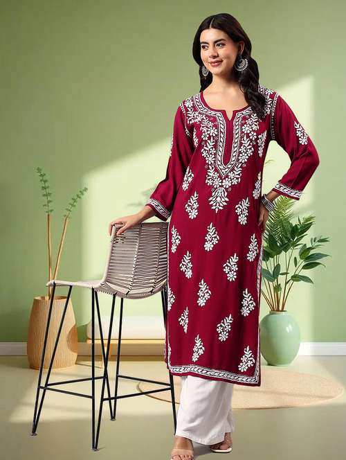 - Grab this beautiful kurta made up of rayon fabric featuring notch neck designs.