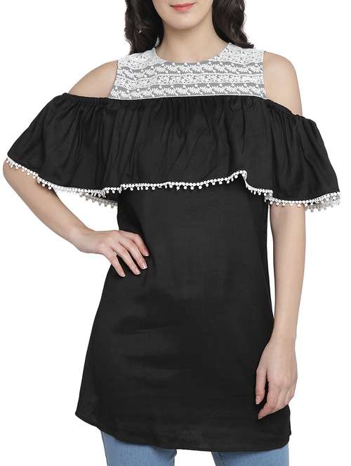cold shoulder ruffle detail tunic - 15301124 -  Standard Image - 1 cold shoulder ruffle detail tunic - 15301124 -  Zoom Image - 1