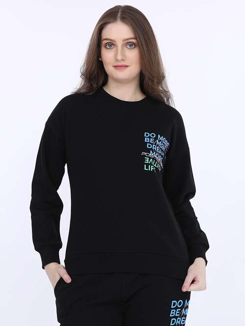 - Recreate your winter style with the all new frisky design options of sweatshirts available in black shades and hues to brighten up the chilly days.
