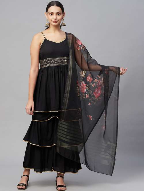 black kurta sharara set with dupatta