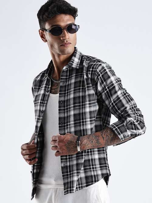 men checkered collared long sleeve regular fit shirt
