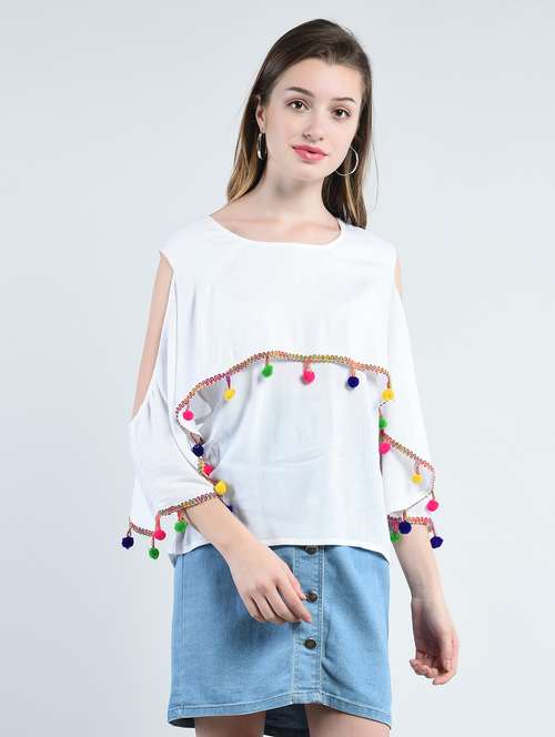 pom pom detail cold shoulder top - 14947074 -  Standard Image - 1 pom pom detail cold shoulder top - 14947074 -  Zoom Image - 1