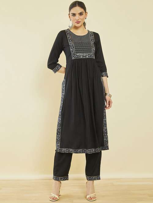 - » women black round neck kurta pant set